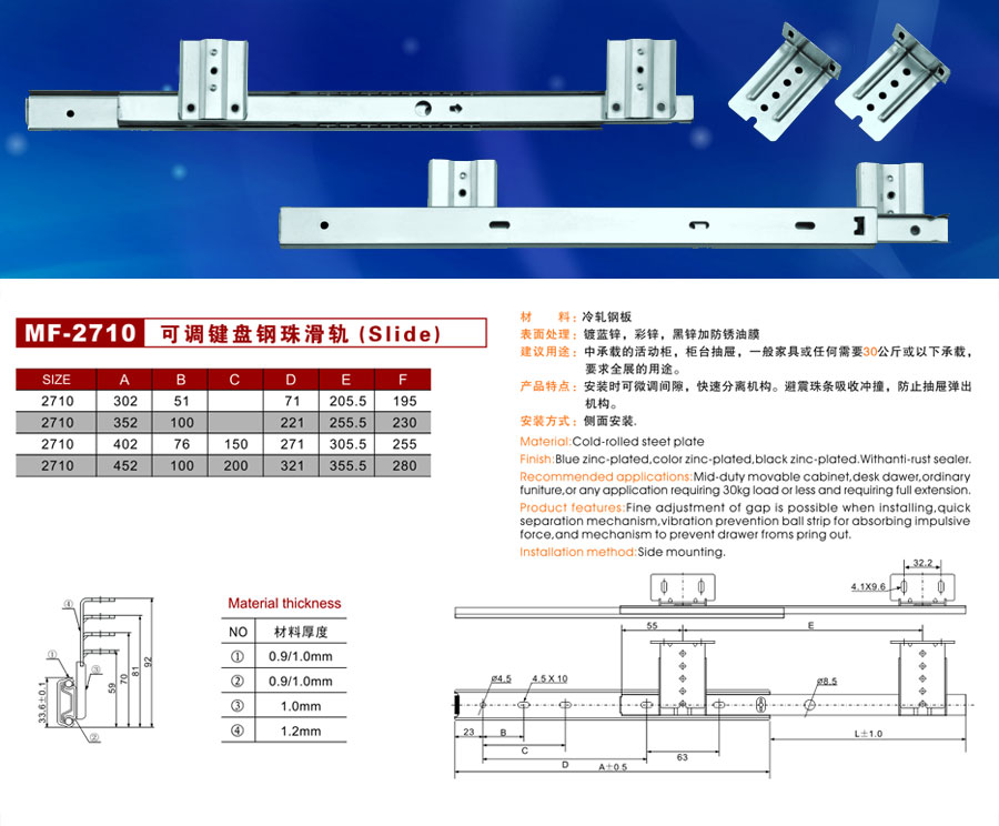 MF-2710可調(diào)鍵盤(pán)鋼珠滑軌